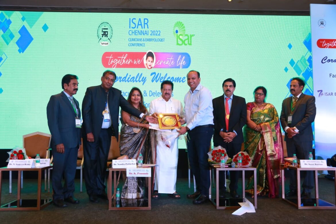 For Best Research Papers, Presentations and Publications. The first award was given by the hands of Honourable Mr. K.Ponmudi – Education Minister of Tamil Nadu in presence of Dr. Nandita Palshetkar – ISAR, President, Dr. Hrishikesh Pai – FOGSI, President, Dr. Shantha Kumari – FIGO, Treasurer, Dr. N. Sanjeeva Reddy and Dr. M.S. Srinivas – ISAR, Chairman Embryology – 26th November 2022, Chennai, Tamil Nadu.